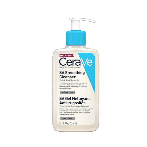 CeraVe SA Smoothing Cleanser with Salicylic Acid 236ml is a gentle yet effective cleanser that helps to smooth and exfoliate the skin, leaving it feeling soft and refreshed. The formula contains salicylic acid, a beta-hydroxy acid that helps to dissolve excess oil and unclog pores, as well as three essential ceramides that help to restore the skin's natural barrier. This cleanser is suitable for all skin types, including sensitive skin.
