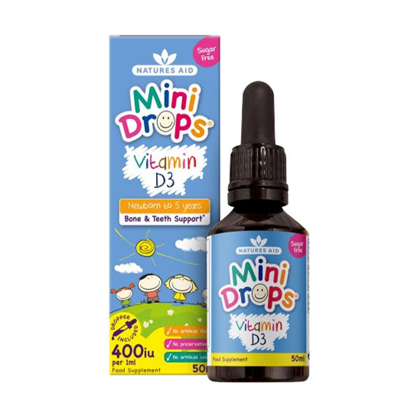 Get the bone and teeth support your newborn needs with Natures Aid Vitamin D3 Drops. Our formula is specially designed for infants and contains the recommended daily dose of Vitamin D3 for optimal development. Help ensure your little one's health with Natures Aid Vitamin D3 Drops.