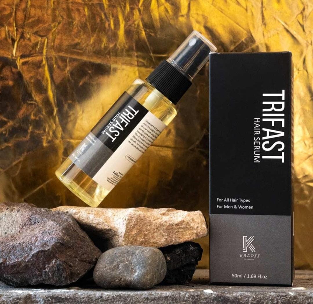 TRI-FAST Hair Serum is a unisex hair care product that promotes healthy hair growth and prevents hair loss. Formulated with natural ingredients such as Saw Palmetto Extract, Biotin, and Caffeine, this hair serum strengthens the hair follicles, stimulates blood circulation to the scalp, and nourishes the hair from root to tip. Its lightweight formula is easy to apply and leaves no residue. TRI-FAST Hair Serum is suitable for all hair types and can be used by both men and women. For more information, visit our website at www.thebeautygarage.pk.